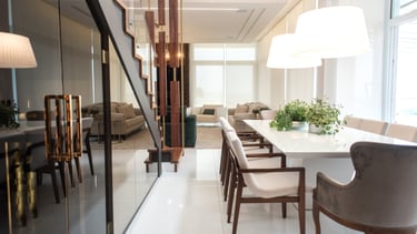 A integração entre os espaços, o uso de materiais nobres e o cuidado com a iluminação são os pilares desse projeto, que combinam estética e funcionalidade com perfeição.
