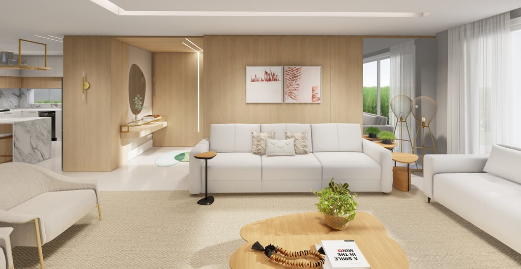 A proposta foi criar uma atmosfera acolhedora e iluminada, favorecendo o bem-estar dos moradores e a fluidez do dia a dia. Materiais naturais, iluminação bem distribuída e elementos contemporâneos se unem para dar vida a um lar equilibrado, que convida à convivência e ao relaxamento.