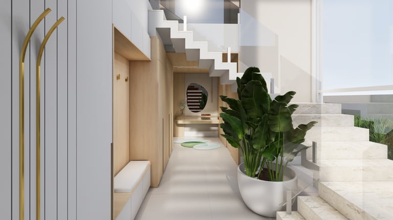 Nesta residência em reforma, desenvolvemos um projeto de interiores que valoriza a leveza, a funcionalidade e o conforto dos ambientes.