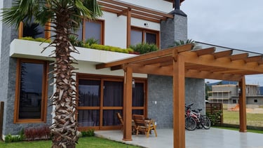 Localizada no Condomínio Rosa Internacional, em Garopaba, esta residência foi desenvolvida a partir de um desejo muito claro dos clientes: valorizar elementos tradicionais como o telhado aparente, sem abrir mão da contemporaneidade e do conforto.