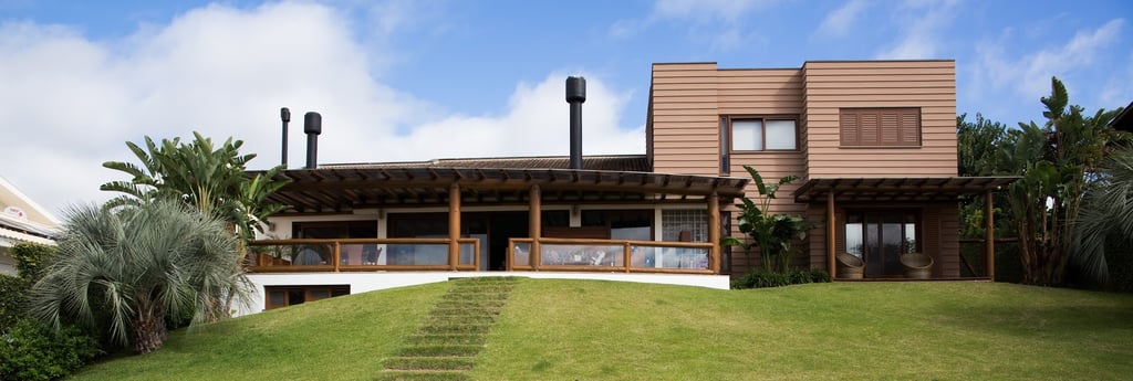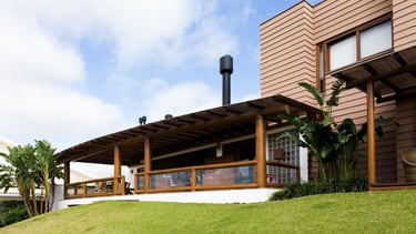 Projetada para um casal com dois filhos, esta residência localizada em Santo Antônio da Patrulha traduz o desejo de unir aconchego, amplitude e conexão com a natureza em uma única linguagem arquitetônica. Com uma forte influência do estilo rústico contemporâneo, a casa se destaca pelo uso expressivo da madeira, tanto na estrutura quanto nos revestimentos, compondo um visual que remete à estética de chalés e casas de campo, mas com soluções modernas e funcionais.