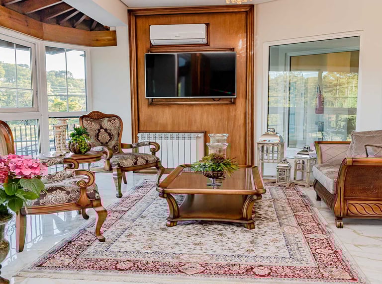 A marcenaria sob medida, os móveis cuidadosamente escolhidos e os detalhes em madeira nobre contribuem para um ambiente sofisticado, sem abrir mão do aconchego.